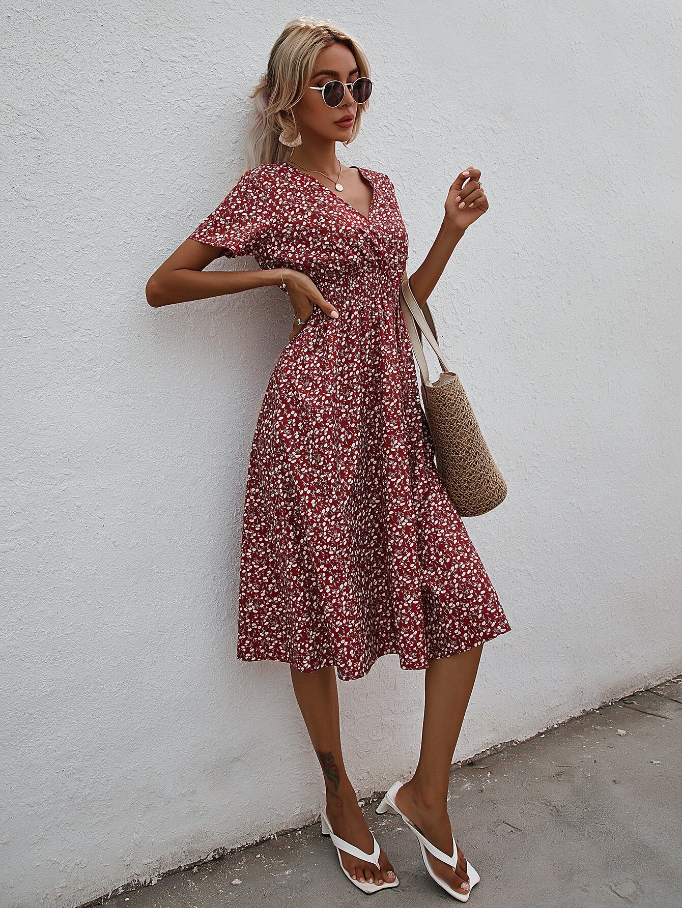 ヨーロッパとアメリカのスタイルの新しいファッションAliExpressの小さな花柄のウエストドレスの女性の潮 ヨーロピアン 6733017871095912