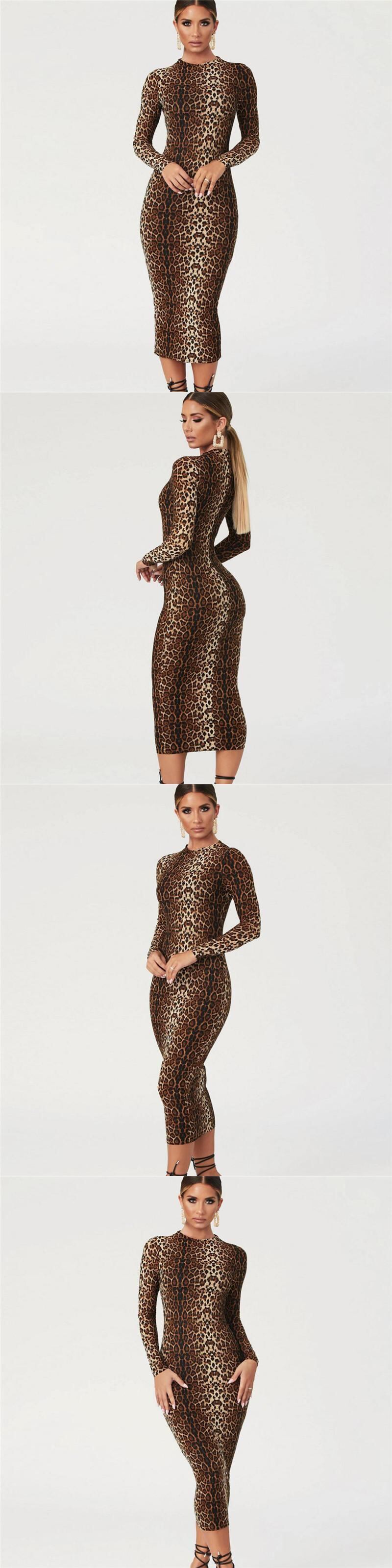 気質秋ニュータイガープリントヒョウ柄長袖ドレスミドル丈スカートを販売するヨーロッパとアメリカンスタイルのファッション ロング オータム 秋物 ヨーロピアン 6733096039754647