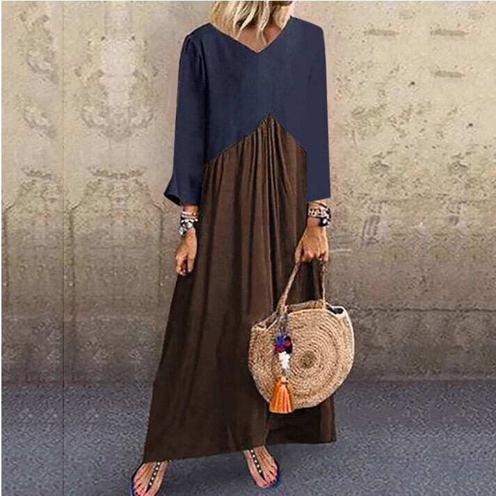 気質ステッチコントラストカラー不規則な長袖ドレストレンディな女性を販売するヨーロッパとアメリカンスタイルのファッションを望みます ロング ヨーロピアン 6733053436530859