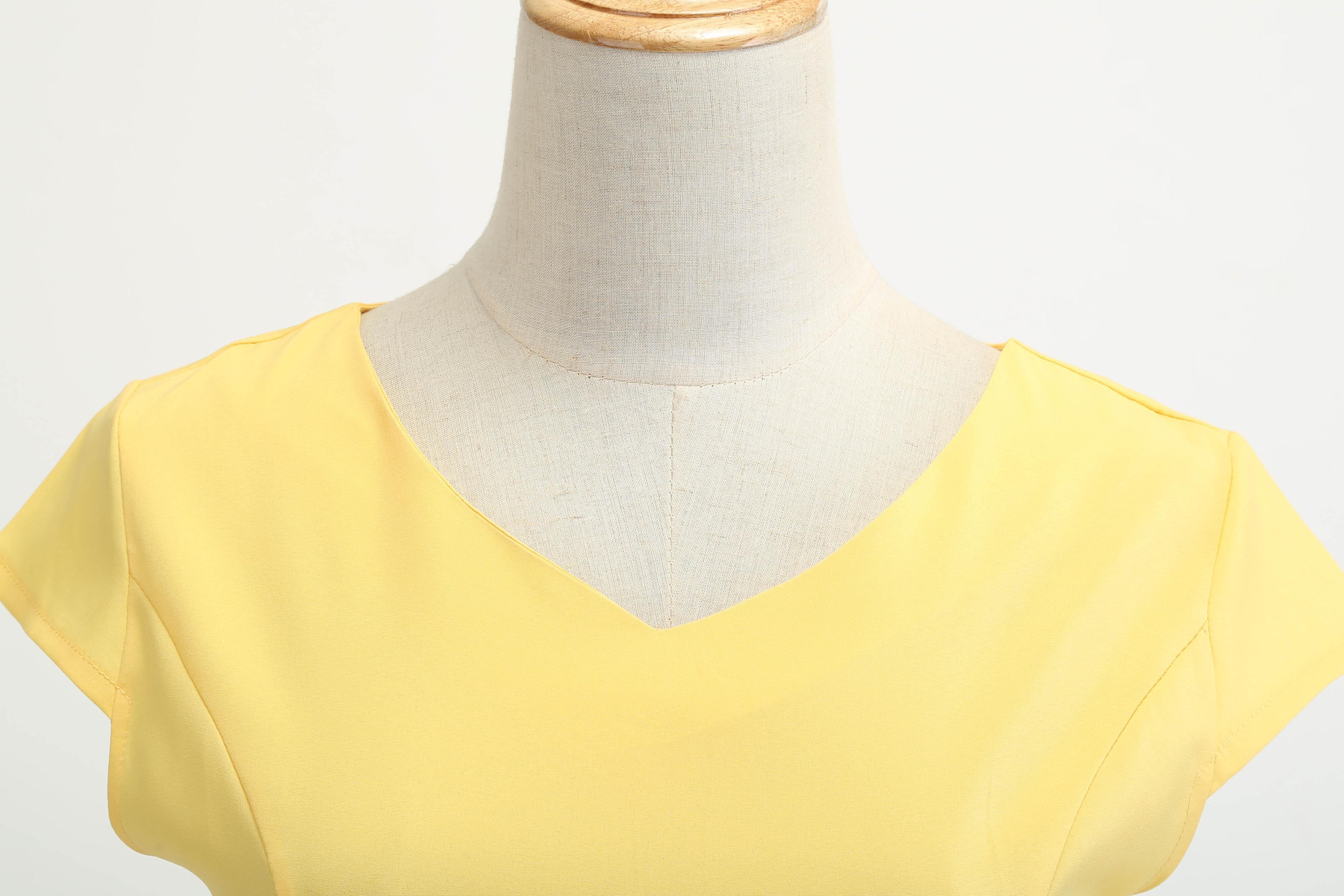 ヨーロピアンとアメリカンスタイルの新作キャラクターレトロVネック半袖無地カジュアルスウィングドレスレディースタイド ソリッドカラー 6733060137488101