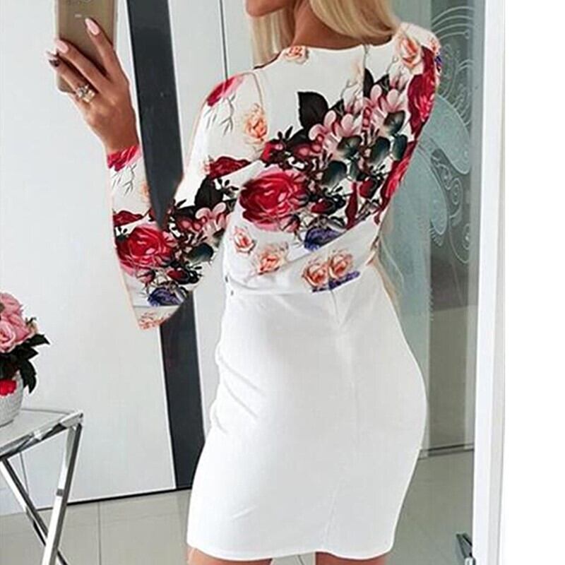 ヨーロッパとアメリカンスタイルのファッション気質販売ドレスセクシーなVネックプリント折り畳みサイドポケット長袖トレンディな女性 ロング ヨーロピアン 6733089587066706