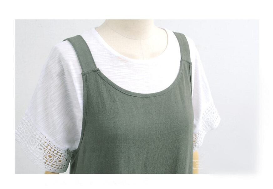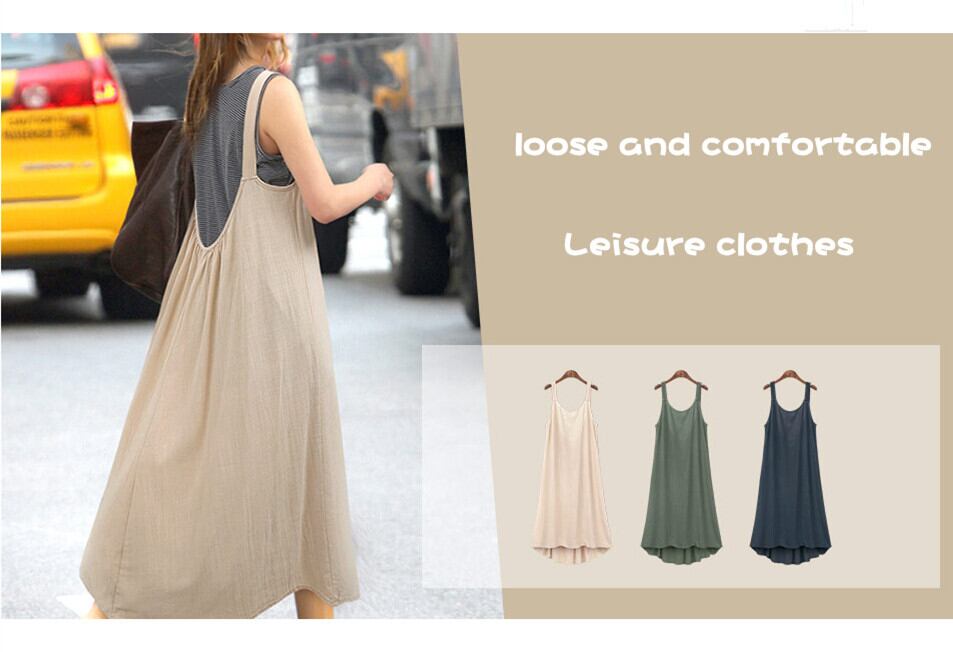 サマーファッションニュープラスサイズレディース無地コットン&リネンサスペンダースカートファットシスタールーズウォッシュコットンロングスカート 大きめサイズ 夏物 ソリッドカラー 6733080526694199
