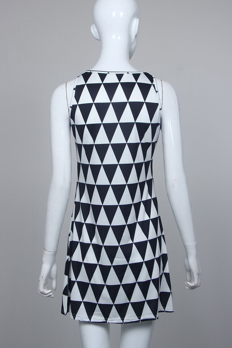 ヨーロッパとアメリカのスタイルの夏の新しいファッションセクシーなノースリーブの三角形の黒と白のプリントミニドレスの潮 ホワイト ブラック サマー 夏物 ヨーロピアン 6733083668710849