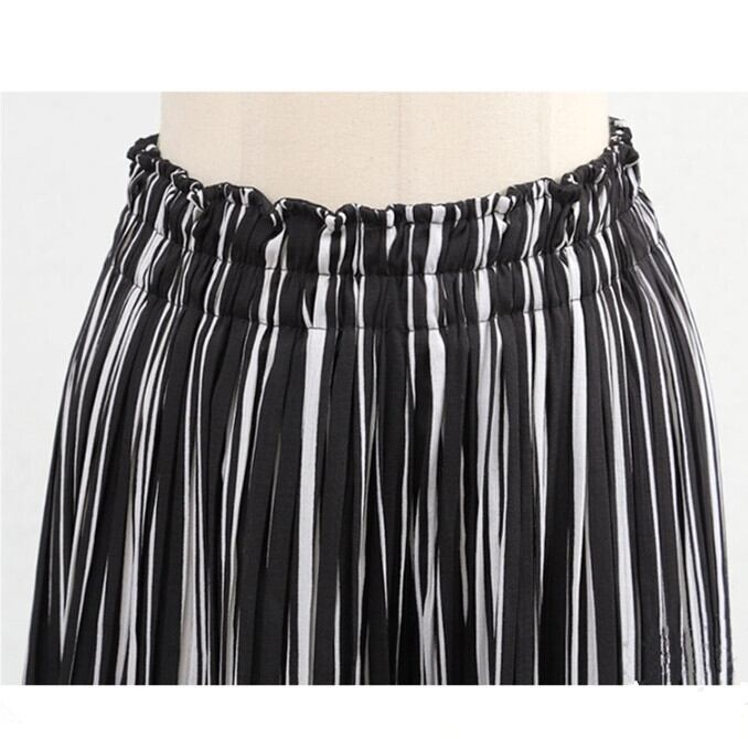 売れ筋の新作欧米大型プリーツシフォンワイドレッグパンツファットシスター伸縮性ハイウエストプリントストライプ9点パンツ ハイウェスト エラスティック 大きめサイズ ワイドパンツ ヨーロピアン 6733054869823933