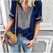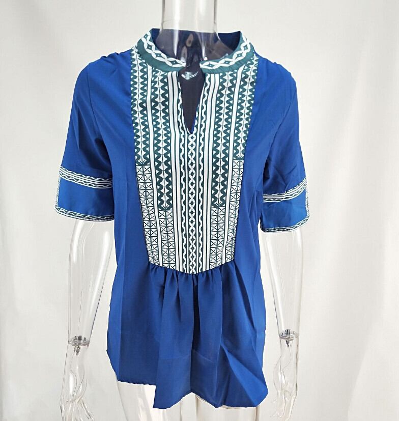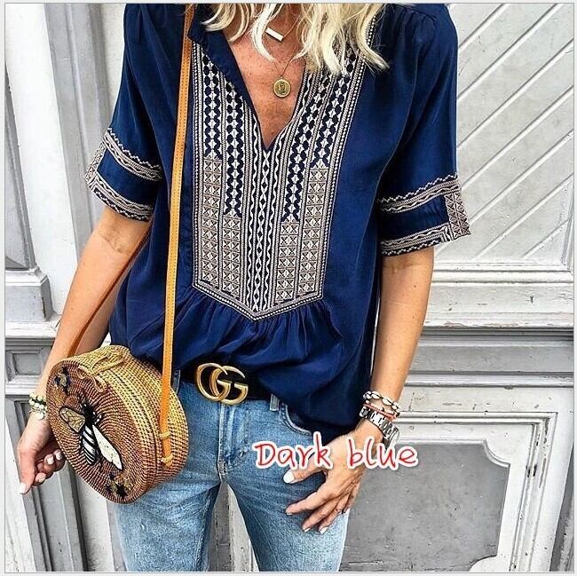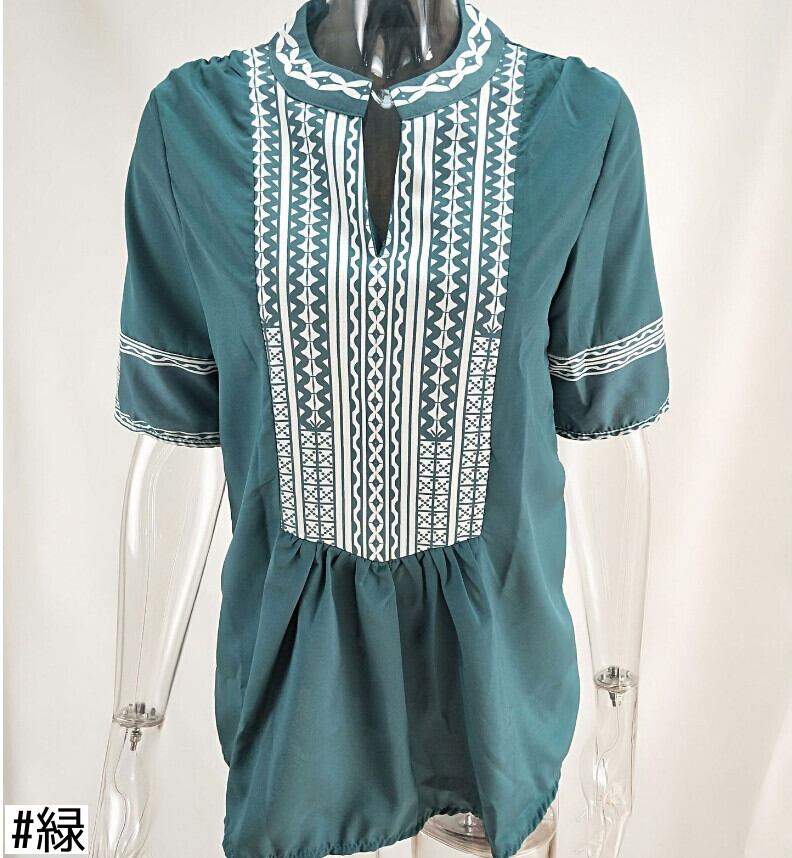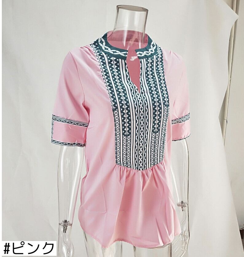 夏の新しいAliExpressヨーロッパとアメリカのエスニックスタイルのストライプVネックレディースカジュアルラージサイズTシャツトレンド 大きめサイズ サマー 夏物 ヨーロピアン 6733067895988169