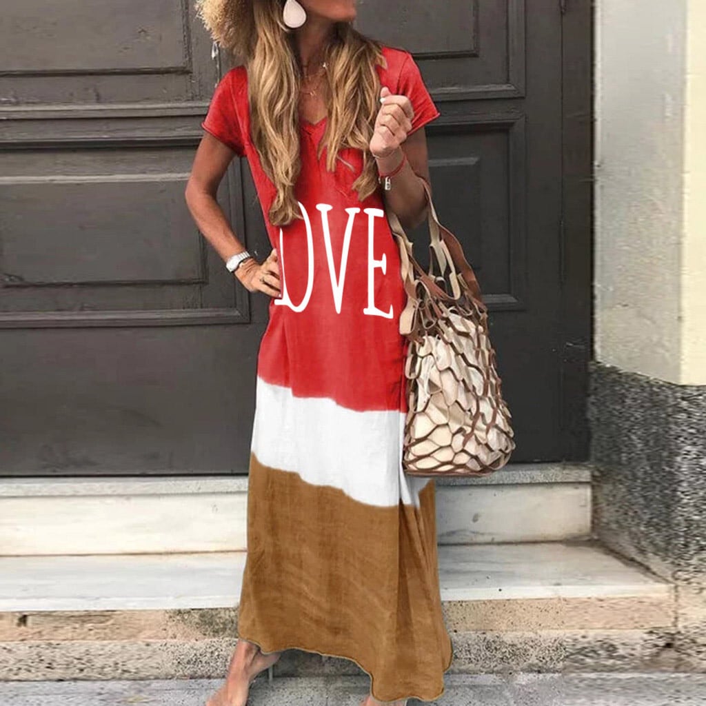 夏のファッションヨーロッパとアメリカのプラスサイズの婦人服の販売ルースコントラストカラーステッチ半袖のヨーロッパとアメリカのドレス 大きめサイズ サマー 夏物 ヨーロピアン 6733065606916671