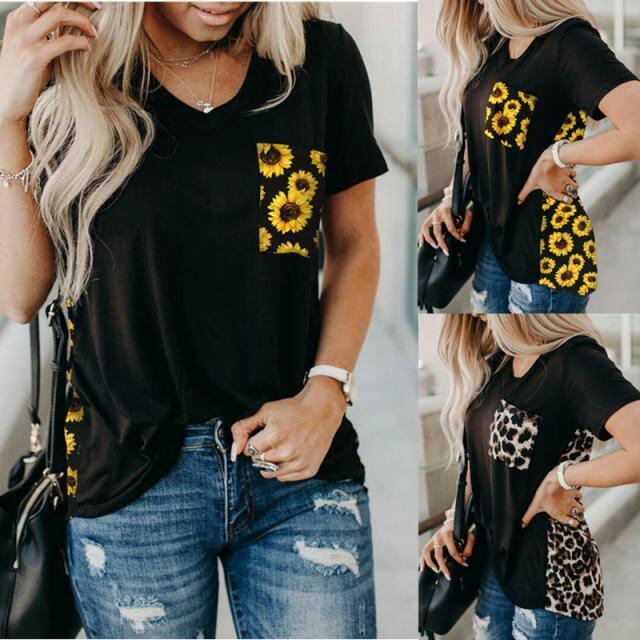 夏の新しいファッションヨーロッパとアメリカのeBayAliExpressの新しい半袖デイジープリントカラーマッチングTシャツの女性 サマー 夏物 ヨーロピアン 6733051459054202