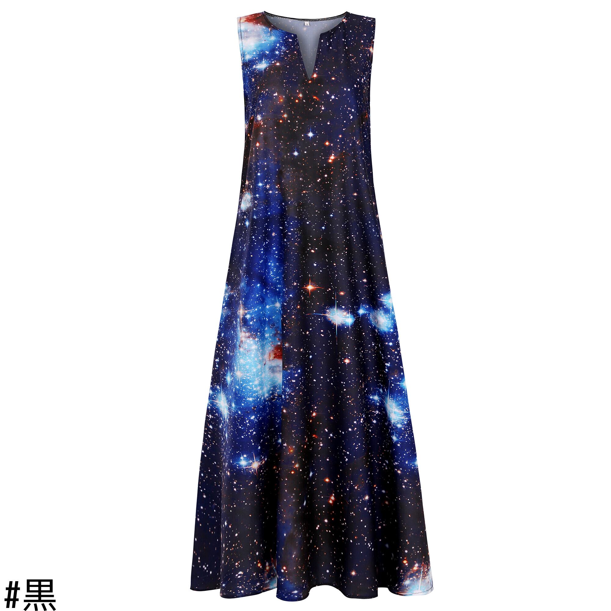 夏の新しいヨーロッパとアメリカンスタイルのファッション新しい3D星空プリントドレスノースリーブロングスカートトレンド サマー 夏物 ヨーロピアン 6733093420150684