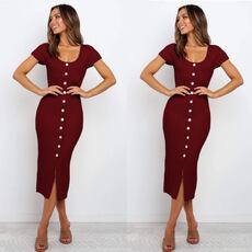 夏のヨーロッパとアメリカンスタイルのファッション新しいセクシーなストリートヒップスター半袖ストレッチオープンチェストドレストレンディな女性 サマー 夏物 ヨーロピアン 6733033630503993