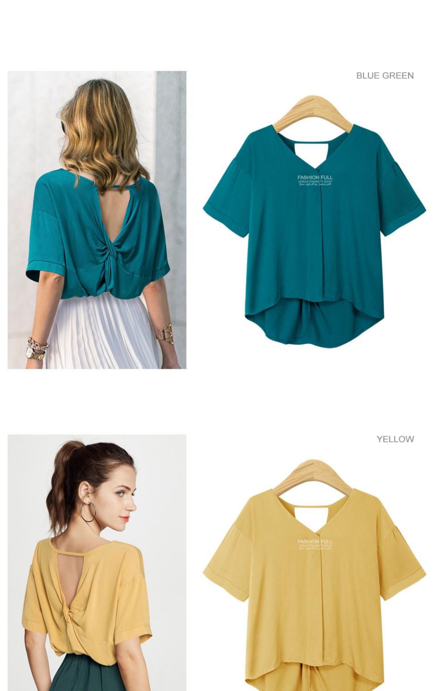ヨーロピアンステーションサマーヨーロピアンとアメリカンスタイルのファッション新製品プラスサイズの婦人服ファットMMバックレス半袖Tシャツトレンド 大きめサイズ 夏物 6733053552168003