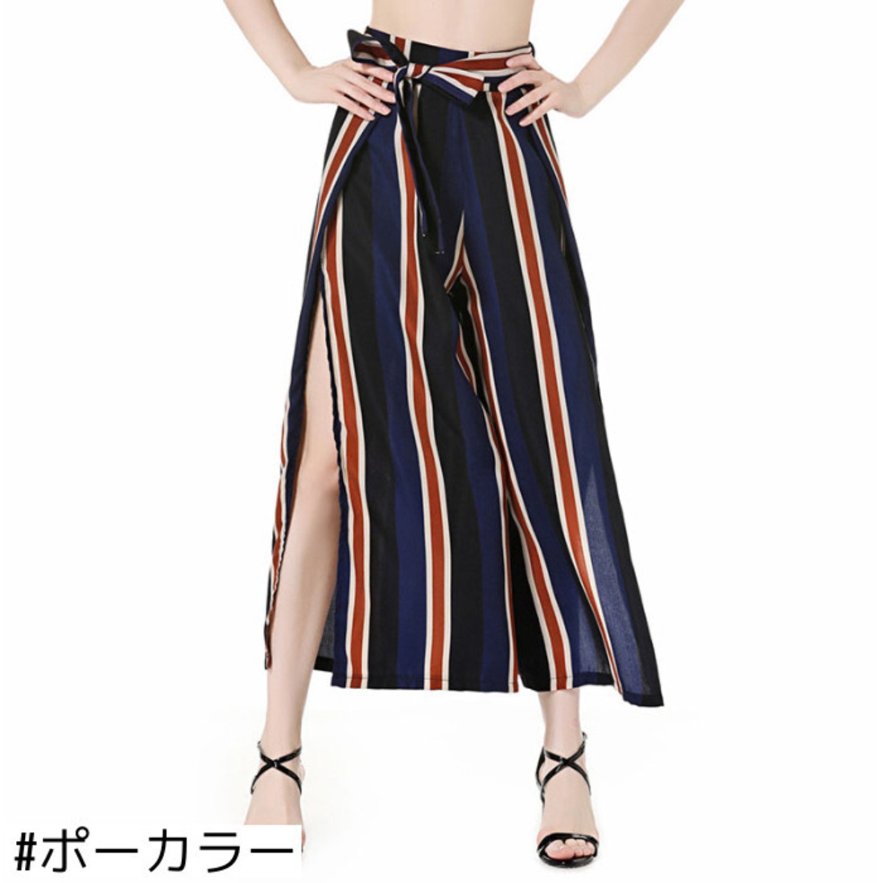 レディースストライプセクシースリットレースアップパンツレディースパンツホリデーワイドレッグパンツを販売する欧米のファッション ヨーロピアン 6733059123073883