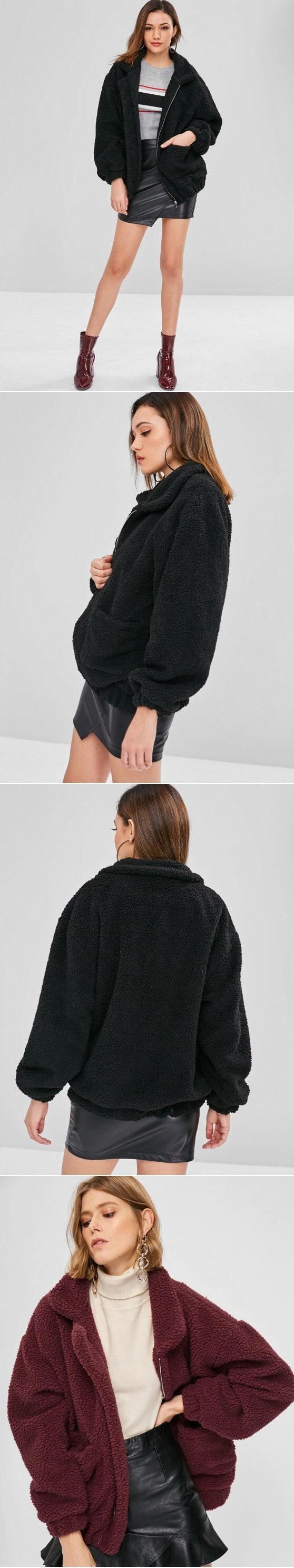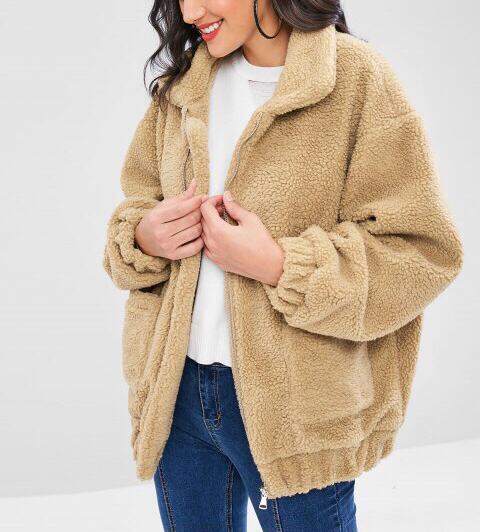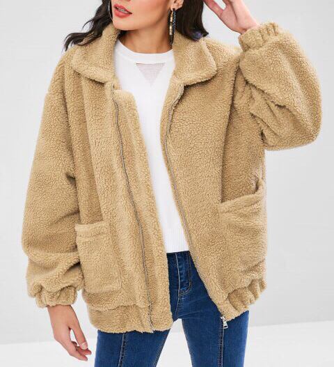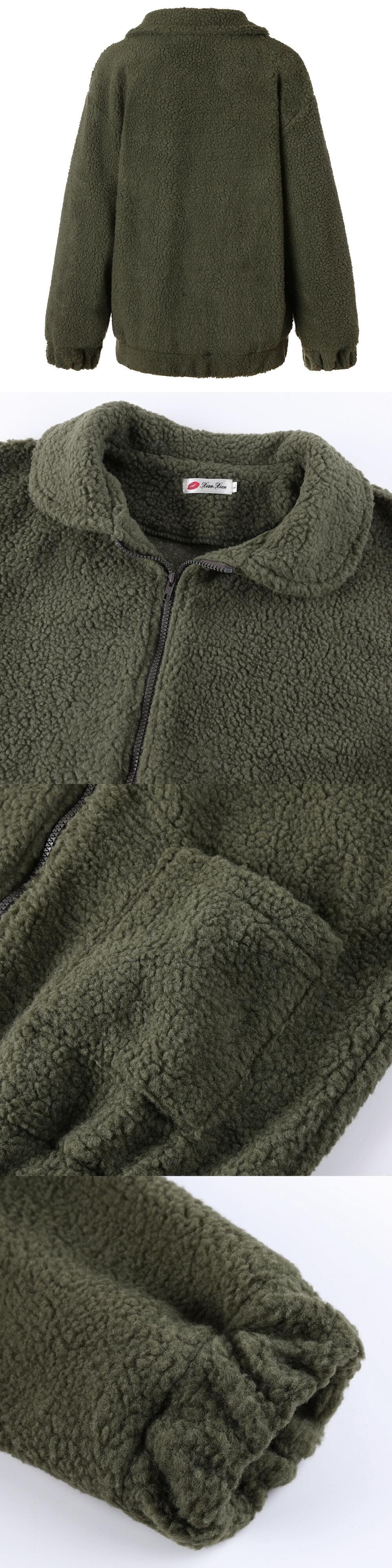 秋冬の新作ファッションヨーロッパとアメリカの長袖ジッパーぬいぐるみジャケットコートポケット付き無地レディースセーター ロング オータム 秋物 ウィンター 冬物 ソリッドカラー ヨーロピアン 6733078350039380