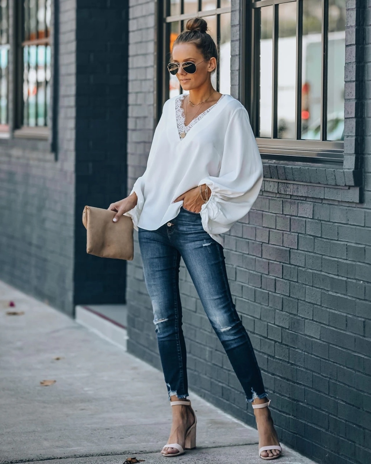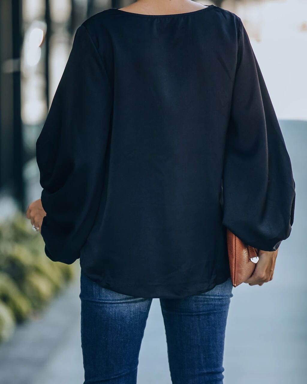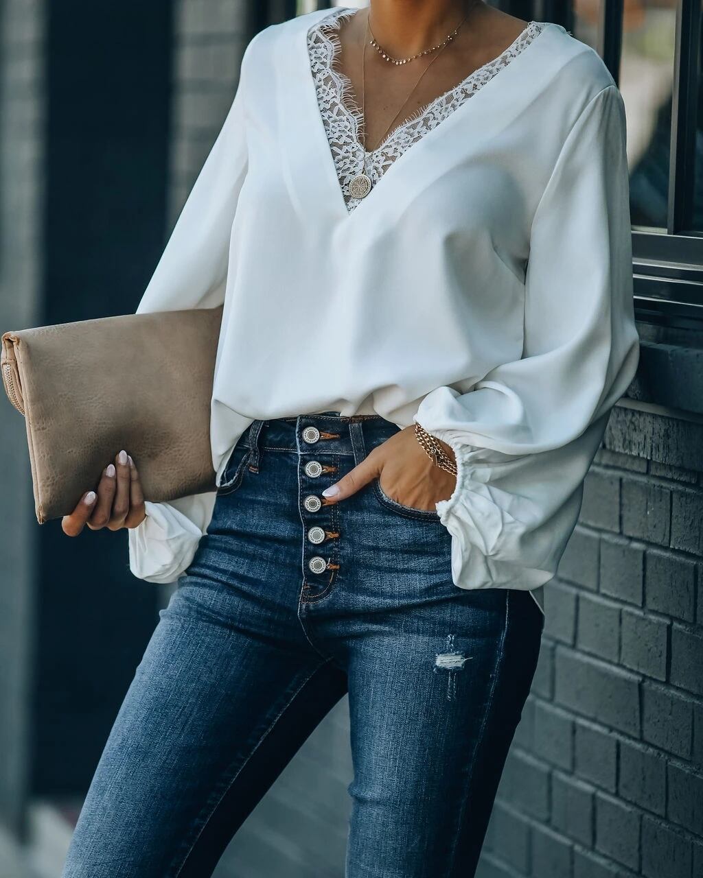 ヨーロッパとアメリカンスタイルの春AliExpressの新しいレースステッチ無地Vネック不規則な長袖オールマッチトップ女性の潮 ロング スプリング 春物 ソリッドカラー ヨーロピアン 6733026909016500