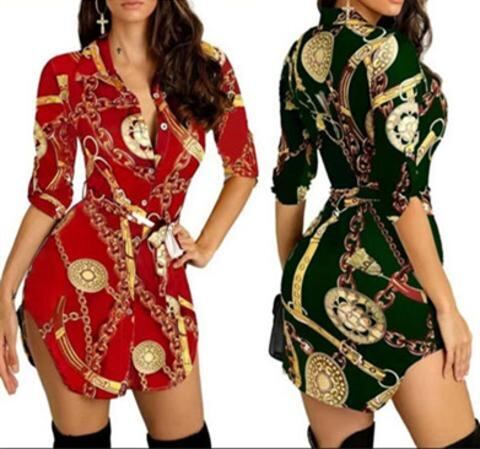 ヨーロッパとアメリカンスタイルのバタフライスカート新しい秋と冬のファッションセクシーなゴールドチェーンショートスカートプリントドレス女性のトレンド オータム 秋物 ウィンター 冬物 ヨーロピアン 6733097028352360