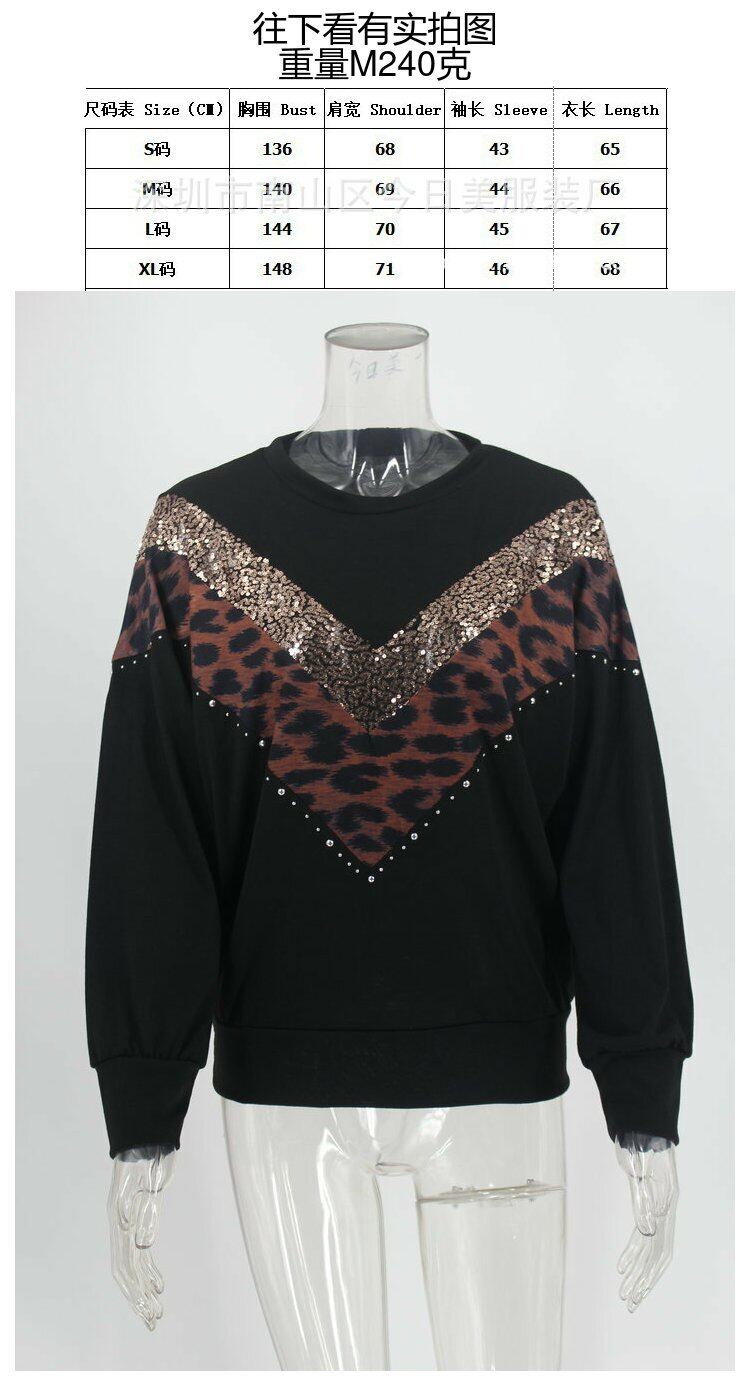 eBay独立ステーションヨーロッパとアメリカの秋と冬の新しいスパンコールヒョウ柄のステッチ長袖ラウンドネックセーター女性のトレンド ロング オータム 秋物 ウィンター 冬物 Oネック 6733059426435923