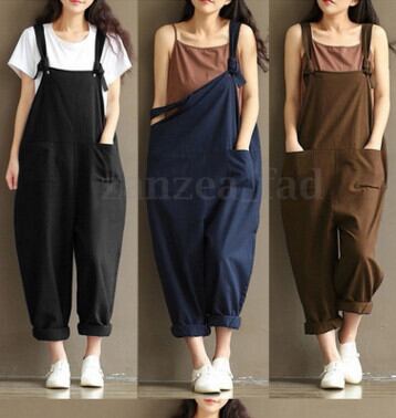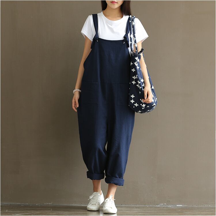 ヨーロッパとアメリカンスタイルの新しい大型女性の文学的なレトロなダークブルーの起毛コットンストラップカジュアルパンツ女性 大きめサイズ ヨーロピアン 6733074087346975