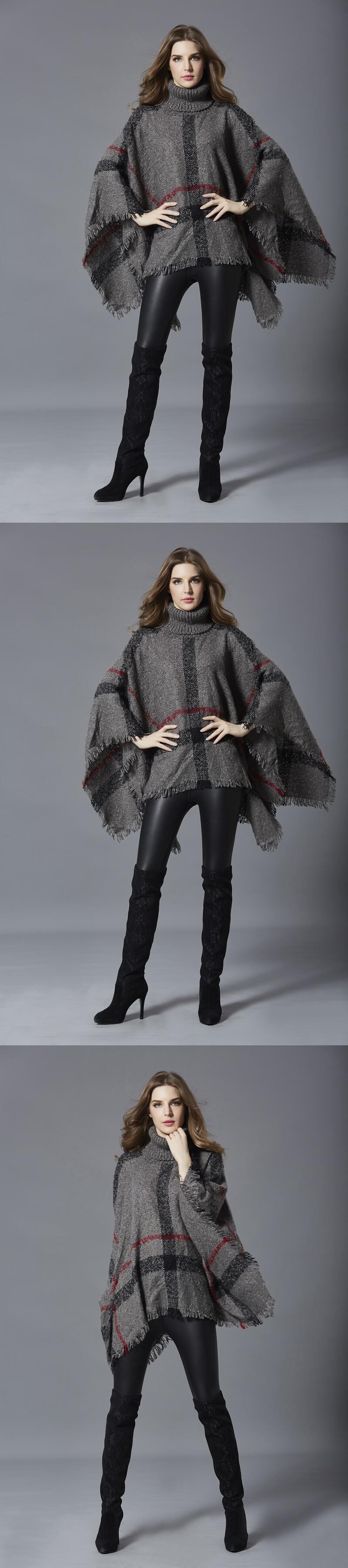 セーターヨーロピアンアメリカンスタイルの秋冬ファッションミドル丈ハイネックフリンジケープショール秋冬ルーズラージサイズニットセーター 大きめサイズ オータム 秋物 ウィンター 冬物 673306025834918