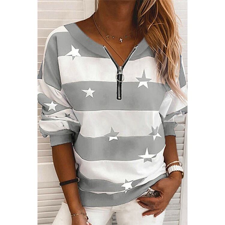 ヨーロッパとアメリカンスタイルのファッションヤマ秋冬Vネックカレッジスタイルカジュアルストライププリントプルオーバールーズジッパーセーター オータム 秋物 ウィンター 冬物 ヨーロピアン 6733014740085270
