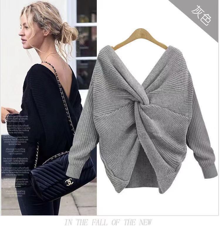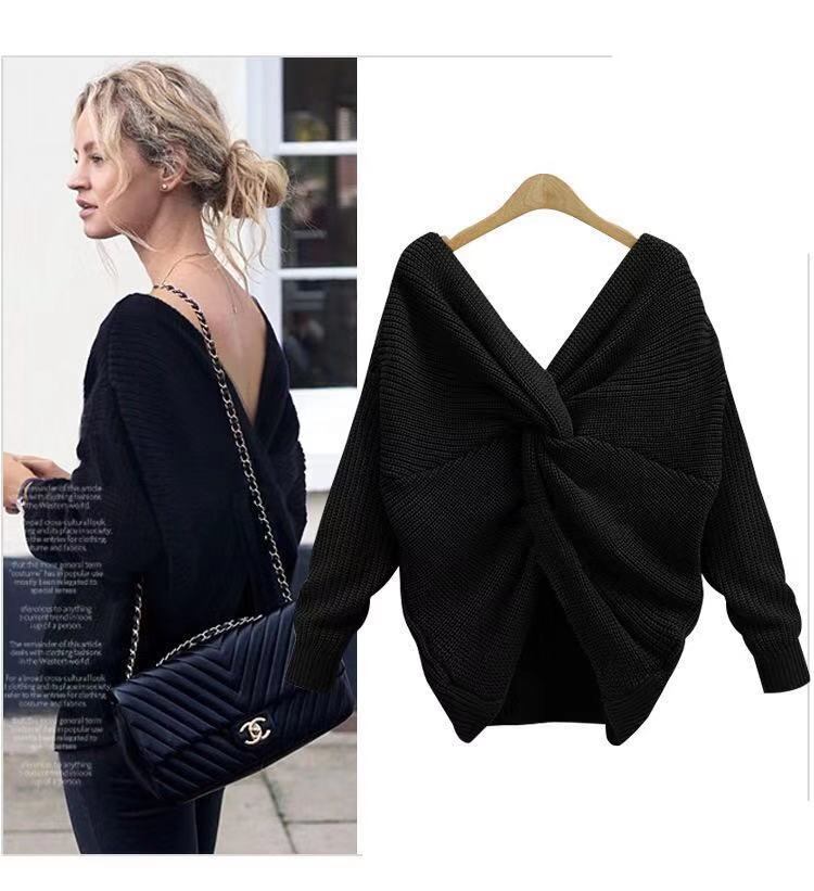 秋冬ファッションヨーロッパとアメリカの新しいVネックバックレスセーターバック不規則なクロスノットセーターを両側に着用 オータム 秋物 ウィンター 冬物 ヨーロピアン 6733035241389922