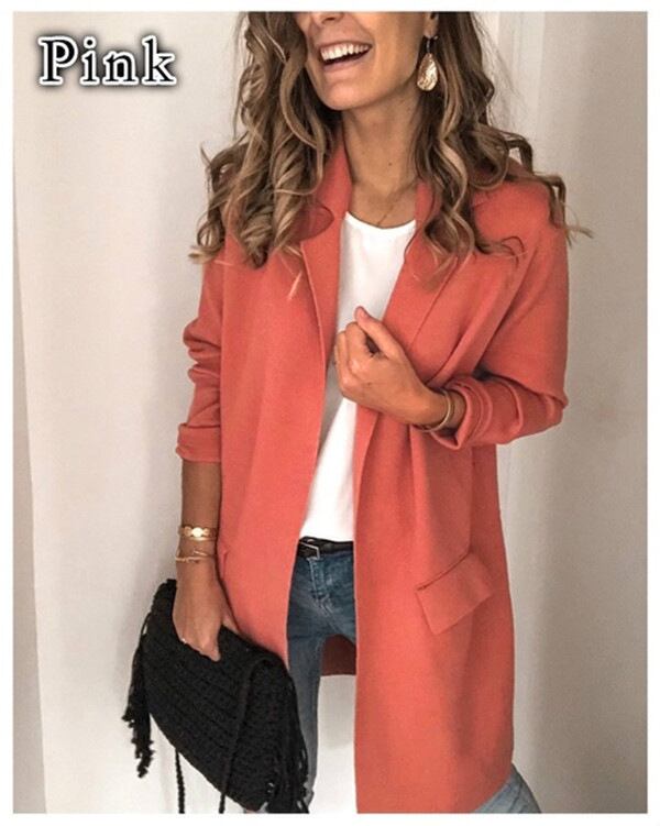 AliExpressの願いヨーロッパとアメリカの秋と冬のファッションセール新しい無地の長袖フェイクポケットカジュアルスーツジャケット婦人服 ロング オータム 秋物 ウィンター 冬物 ソリッドカラー 6733058412190570