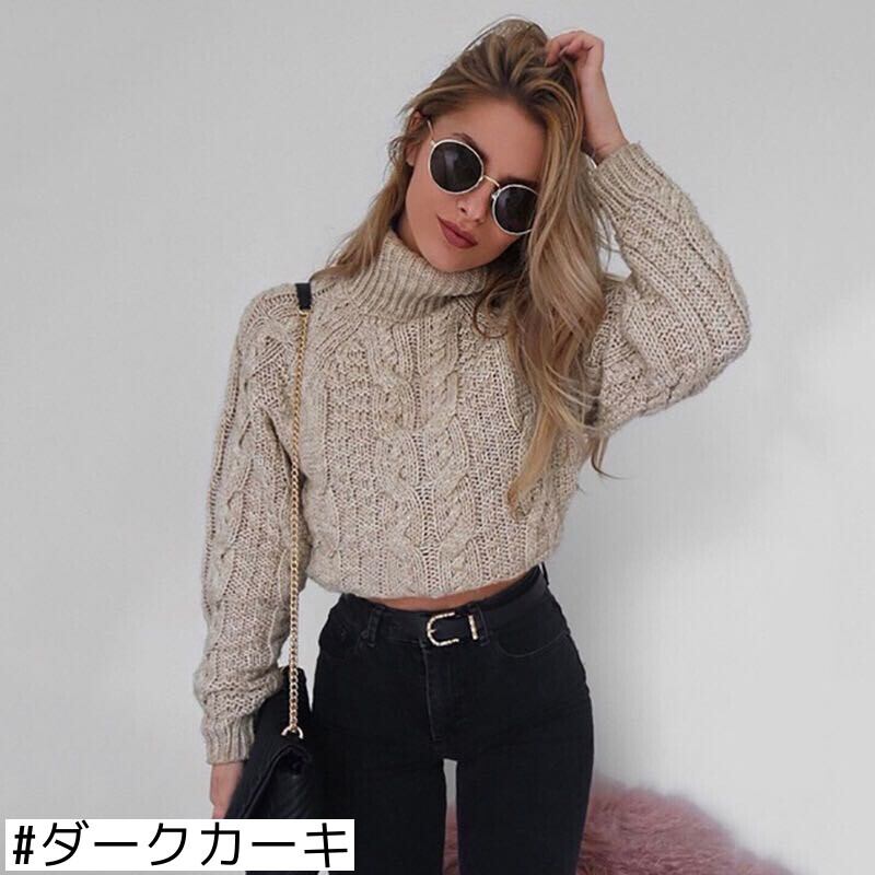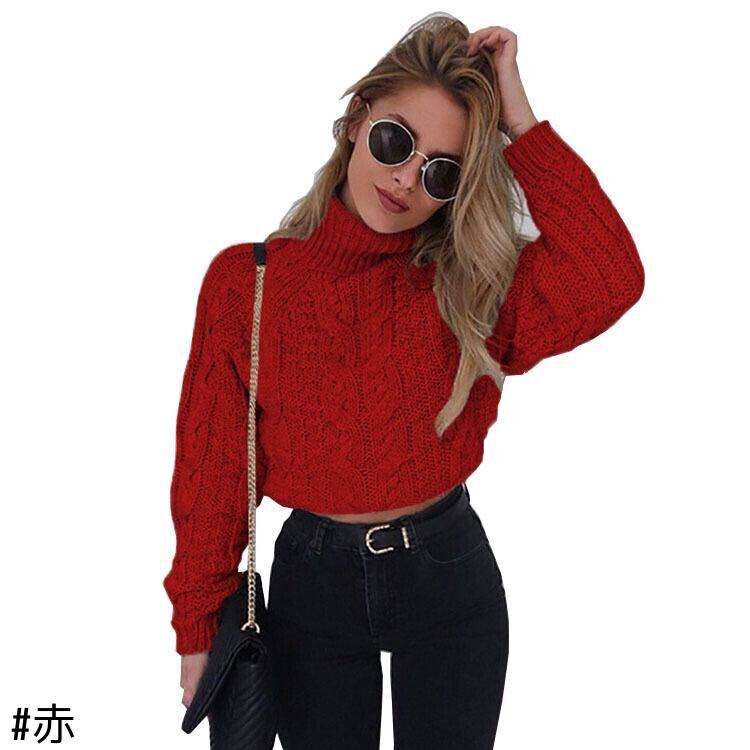 AliExpressヨーロッパとアメリカンスタイルのファッションセーター女性の短い長袖ハイネックセクシーなへそツイストニットセータートレンド ショート ロング ヨーロピアン 6733072663531692