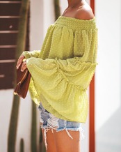AliExpressの秋と冬の新しいヨーロッパとアメリカのワードネックトランペットスリーブTシャツ長袖シフォンシャツトップ女性の潮 ロング オータム 秋物 ウィンター 冬物 ヨーロピアン 6733036451205068
