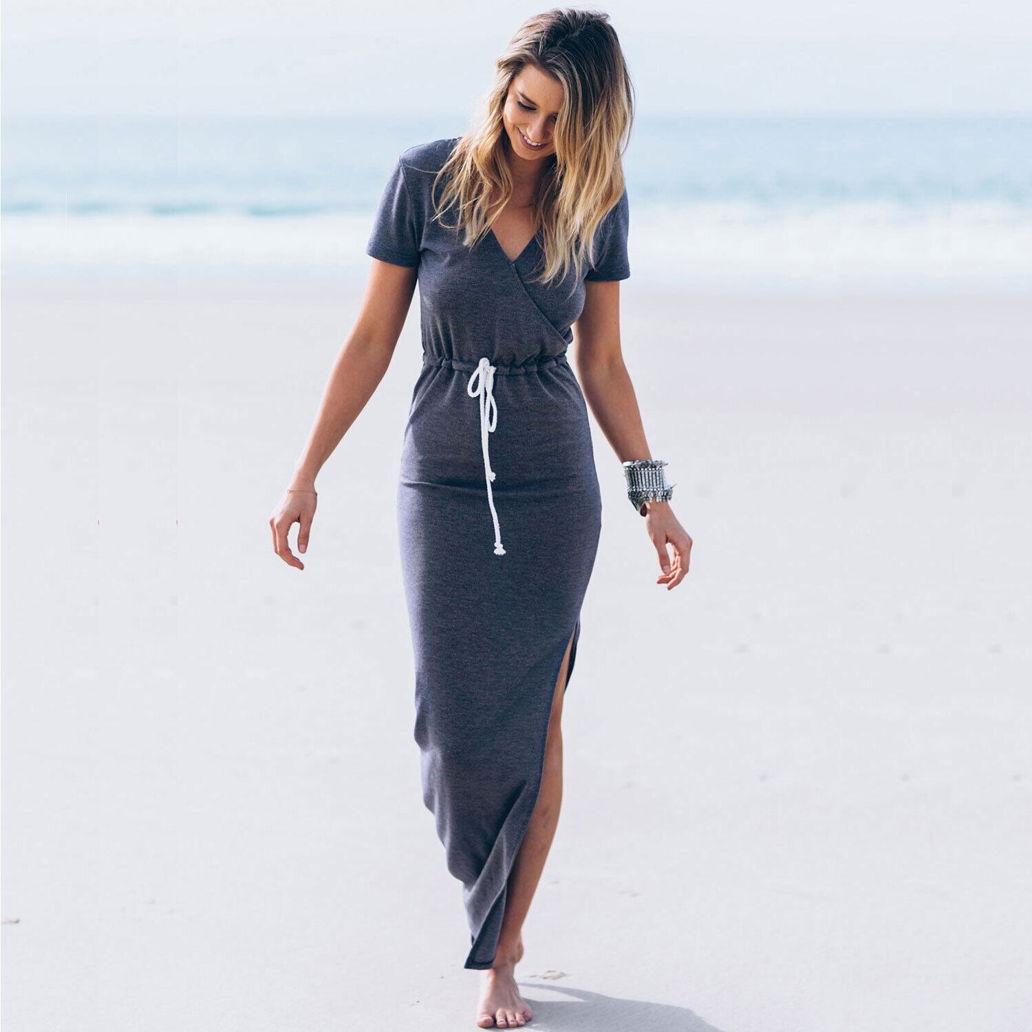 夏の新しいファッションヨーロッパとアメリカの深いVネックのハイウエスト半袖ドレス、不規則なスリット サマー 夏物 ヨーロピアン 6733056335931293
