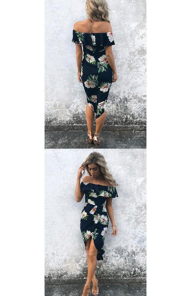 EBAYアマゾンサマーニューセールセクシーオフショルダーフリルイレギュラードレスレディーストレンド 夏物 6733016683036023