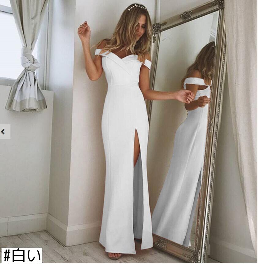 EBAYAliExpress秋冬Vネック新作ファッションセールシンプルセクシーチューブトップスリットワンピースとフロアワンピース オータム 秋物 ウィンター 冬物 6733047001842244