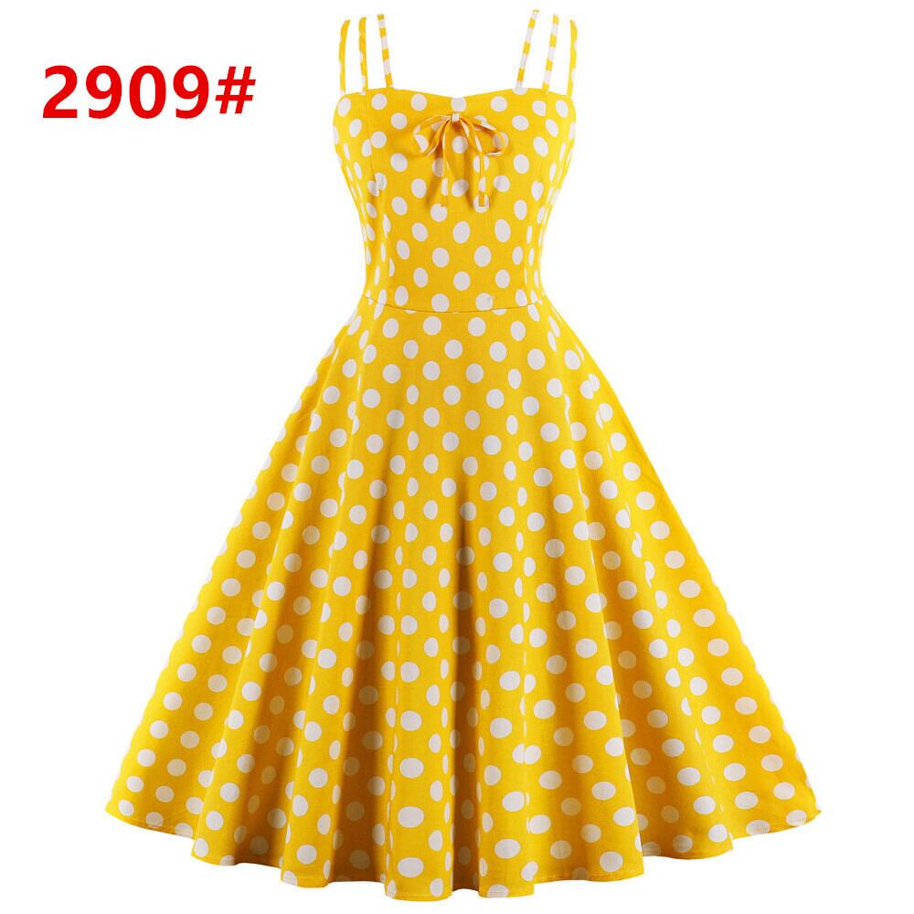 ヨーロピアンとアメリカンスタイルの新しいレトロな60年代の水玉模様のサスペンダースリムフィットラージスイングドレスレディースタイド良質 6733094391697970