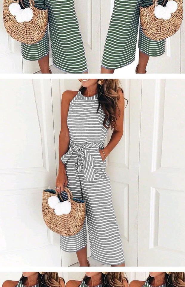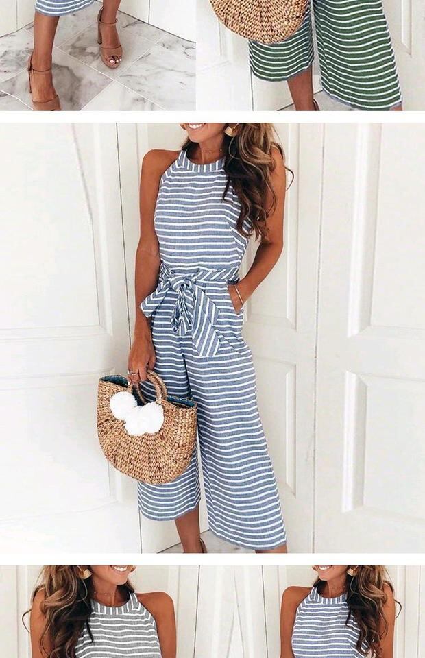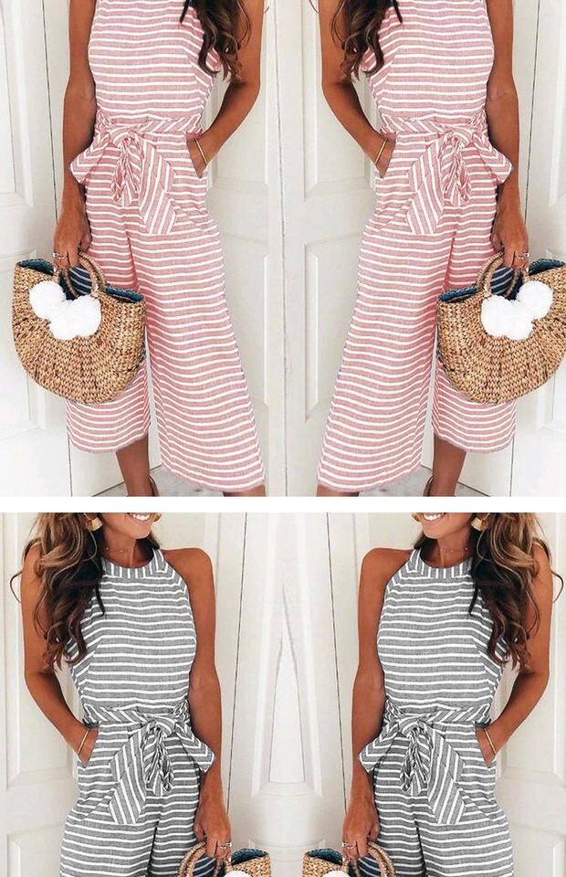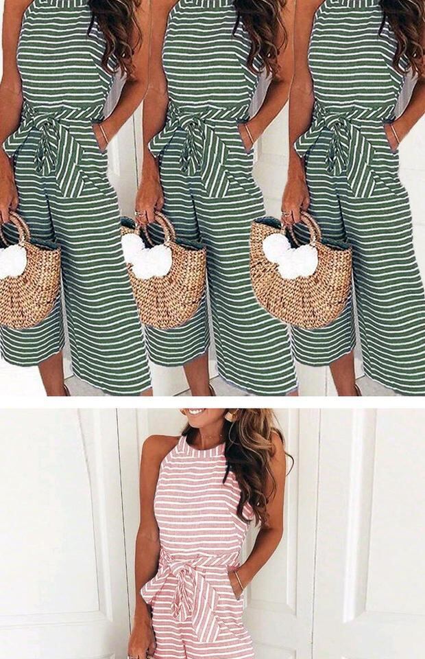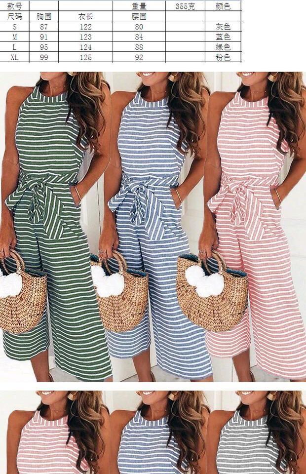 Summer Hot eBayAliExpressスリムレースアップセクシーストライプクルーネックジャンプスーツ サマー 夏物 673303669058930