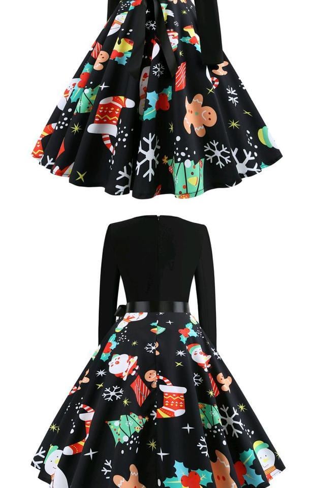 eBayAliExpressの新しいクリスマスプリントステッチ長袖スイングドレス女性はリボンを送信します ロング 673303292818267