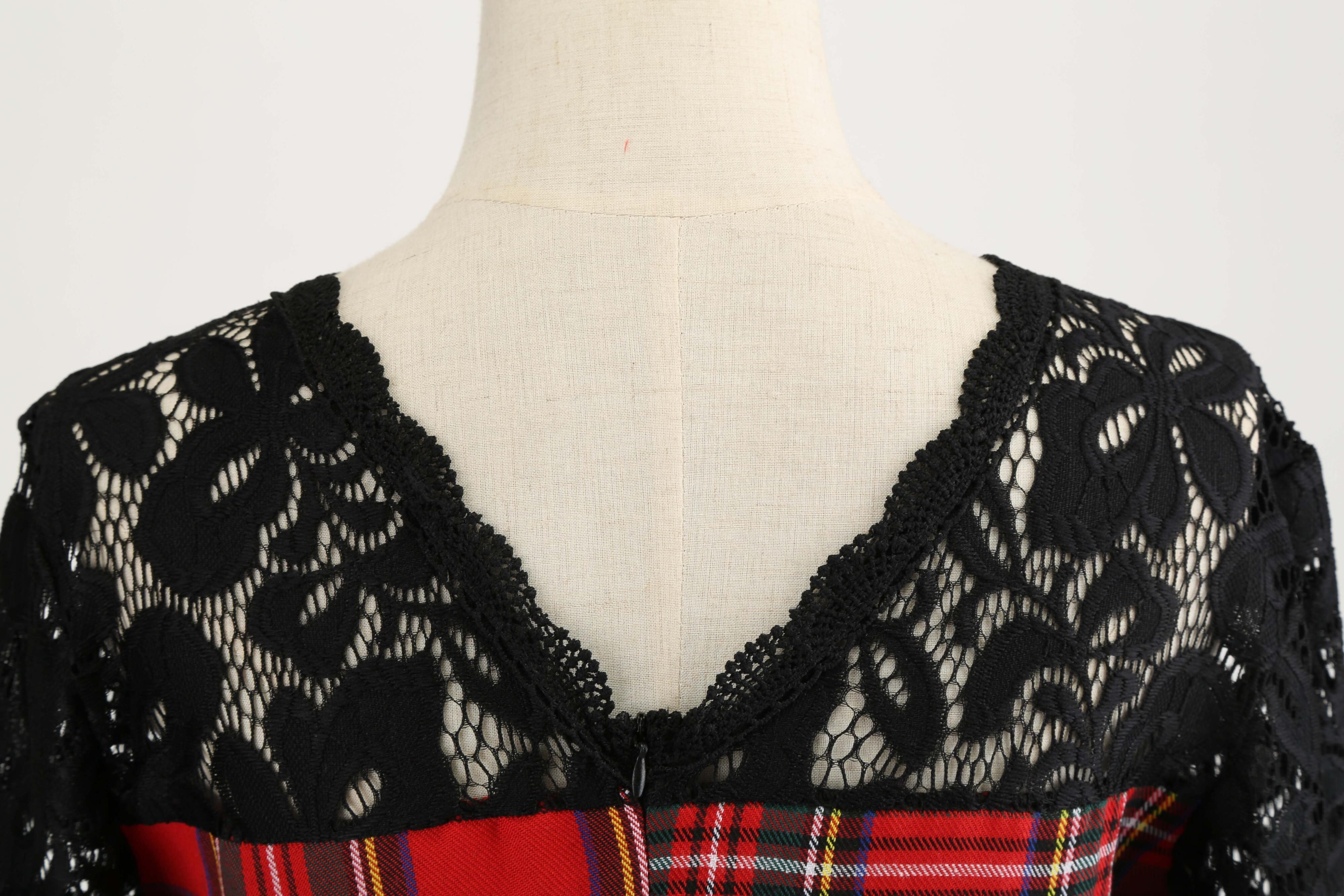 秋の東のファッション新しいヘップバーンスタイルのレースチェック柄ステッチコットンレトロスウィングドレス女性の潮 オータム 秋物 6733036475819621