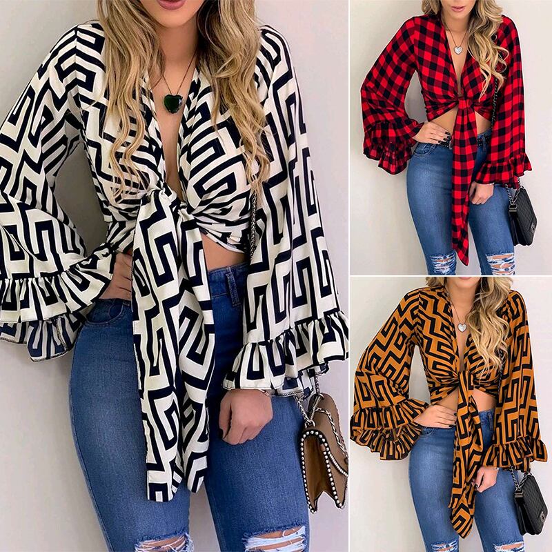 eBayAliExpressはヨーロッパとアメリカンスタイルのファッションセールチェック柄ウエストVネックシャツ女性の潮を願っています ヨーロピアン 6733092480098375
