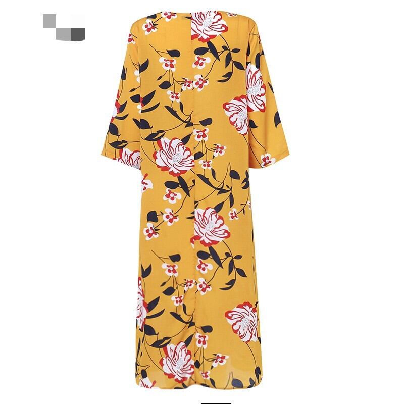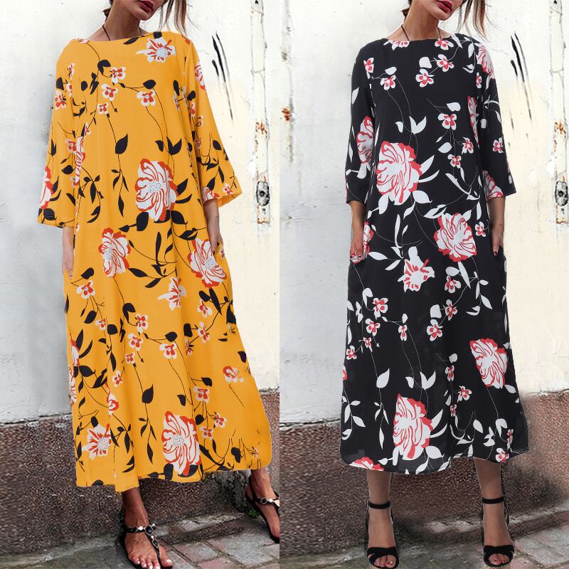 夏のファッションセール気質プラスサイズの女性の新しいファッションプリントラウンドネック七分袖ドレス女性の流行 大きめサイズ サマー 夏物 Oネック 6733030929015463