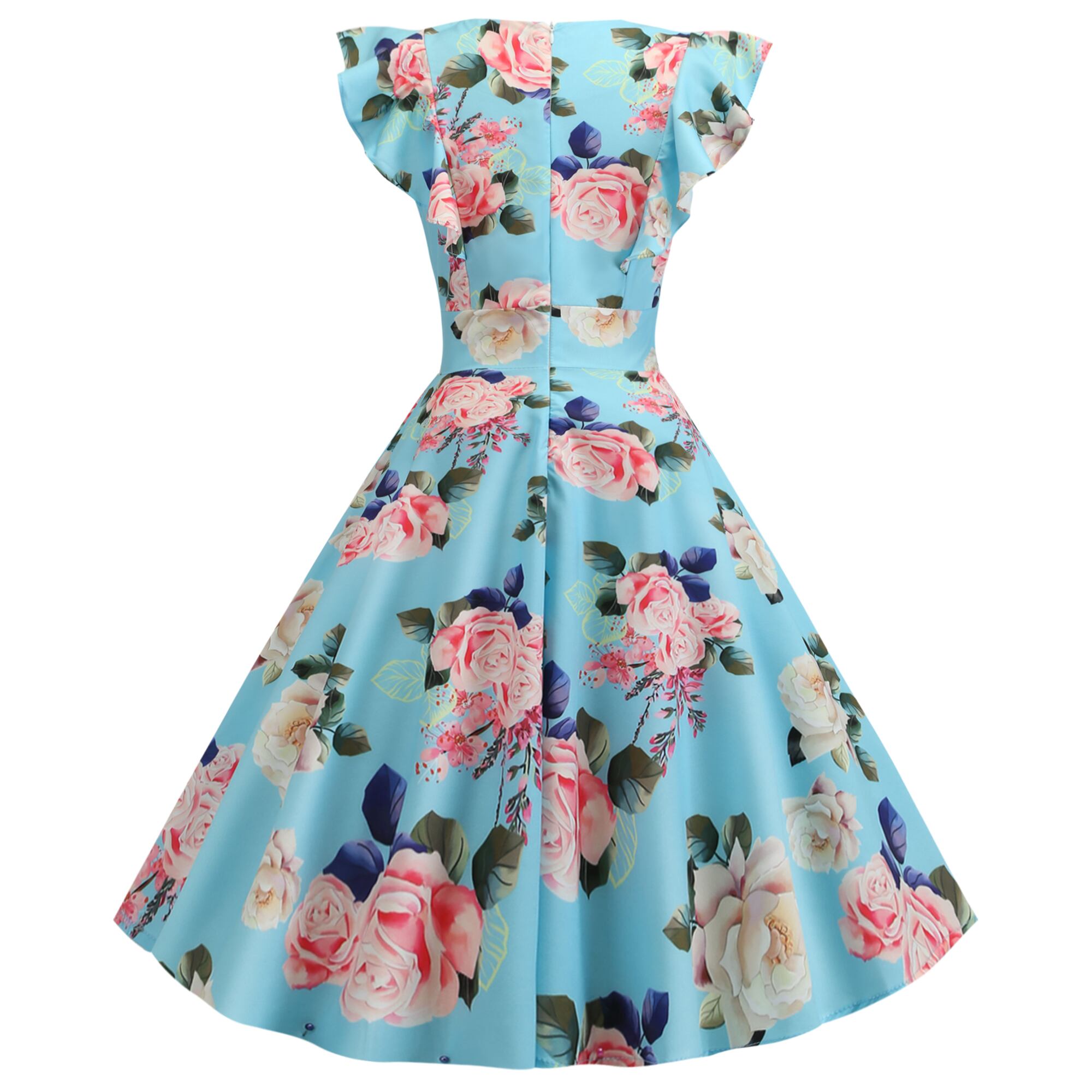 夏のヨーロッパとアメリカンスタイルのプルオーバーアマゾンホット50S60Sレトロフライングスリーブプリントスイングスカートドレス サマー 夏物 ヨーロピアン 6733029047871110