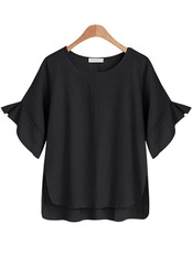 ヨーロピアンとアメリカンスタイルの夏の新しいラージサイズの婦人服の高低スリットスイング気質半袖ルーズシャツトレンディな女性 大きめサイズ サマー 夏物 6733043951684345