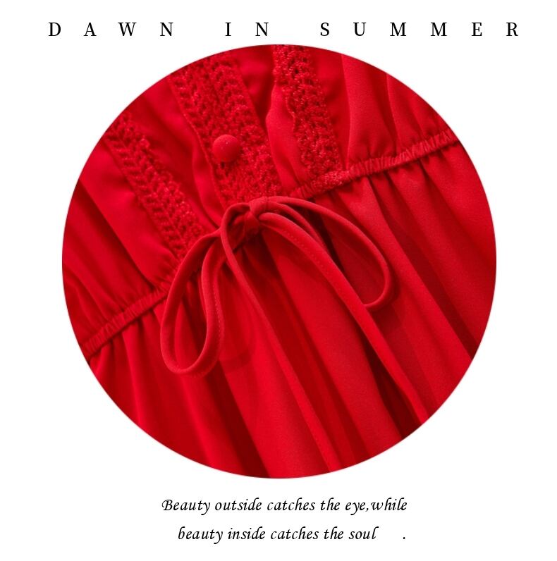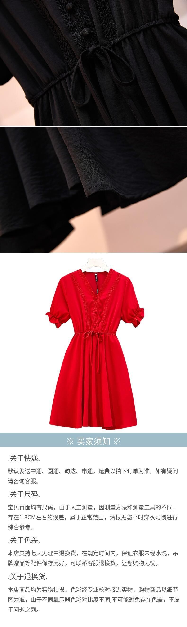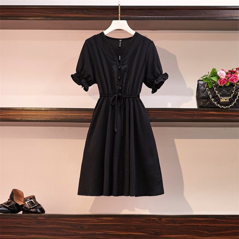 夏の新しいファッションファットMM新しいVネックハイウエストシフォンドレス小さくて薄いA-word怠惰な風 サマー 夏物 6733040526137578