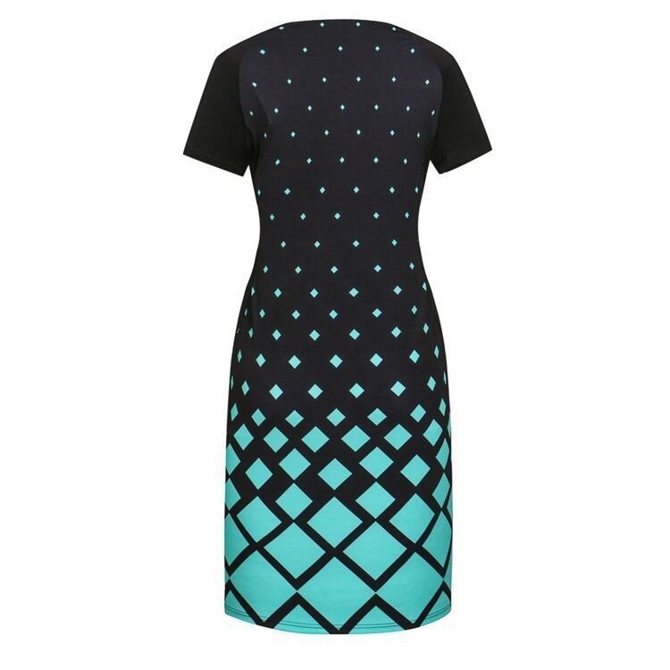 ヨーロピアンステーションサマーニューラージサイズドレスラウンドネック半袖プリントスリムワンステップスカートトレンディな女性 ショート ハーフスリーブ 大きめサイズ 夏物 Oネック 6733021223751810