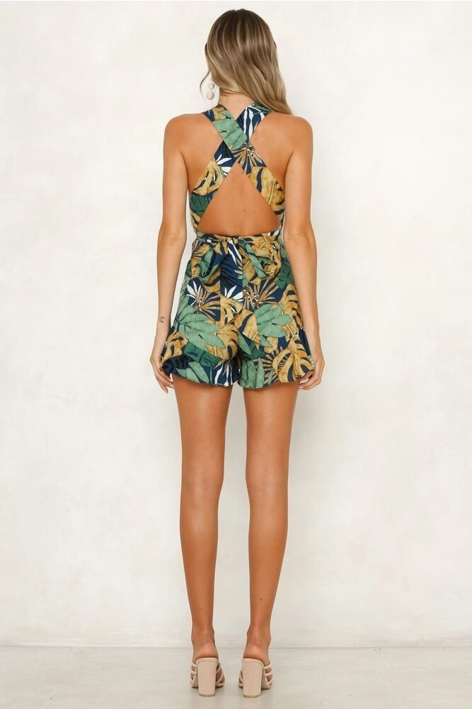 AliExpressアマゾンサマーノースリーブヨーロッパとアメリカのVネックバッククロスレースセクシーなプリントジャンプスーツの女性 夏物 ヨーロピアン 6733097864122792