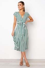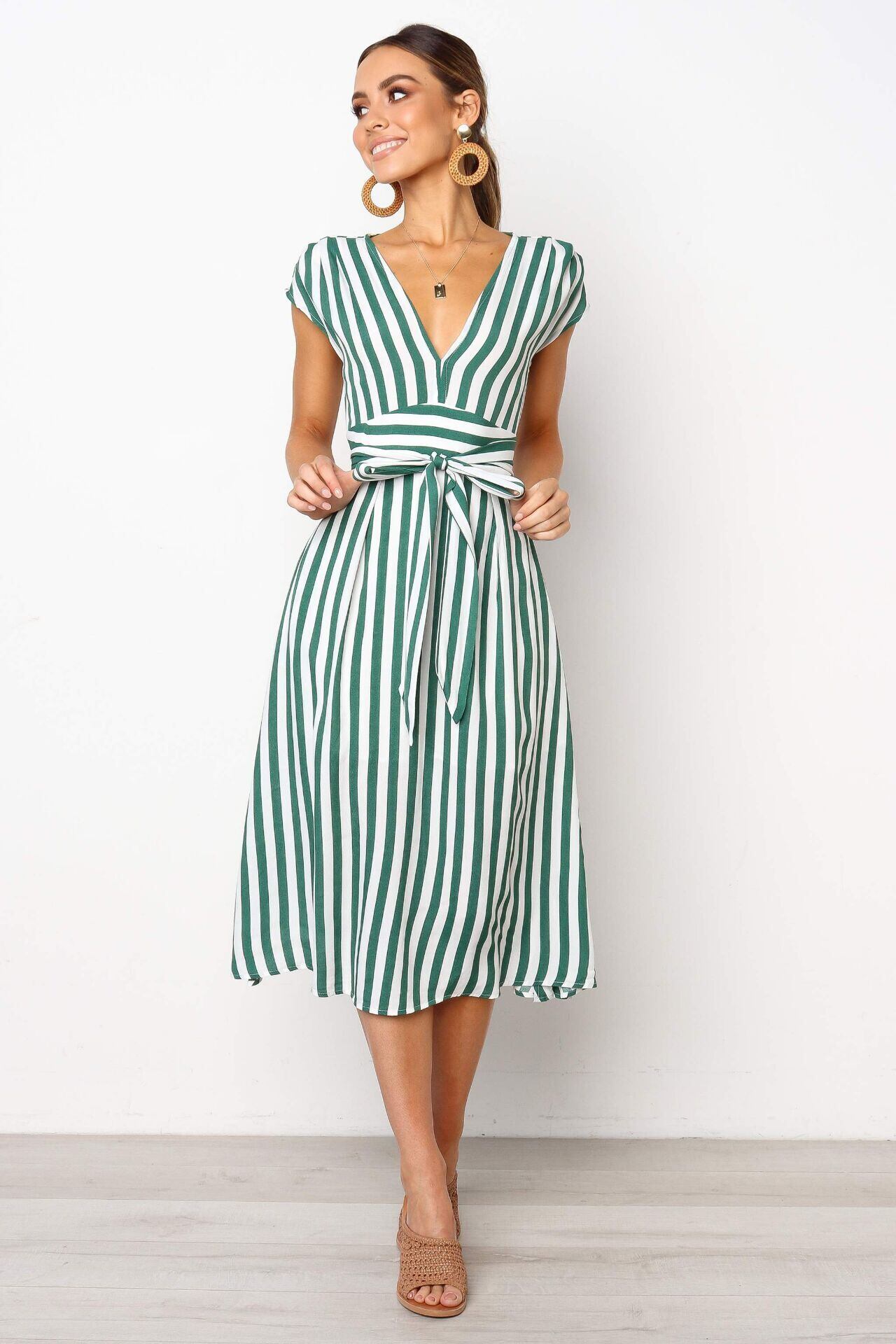 AliExpressの夏の新しいファッションヨーロッパとアメリカの販売気質ディープVストライプレースアップドレス女性2色 サマー 夏物 ヨーロピアン 6733010965150320
