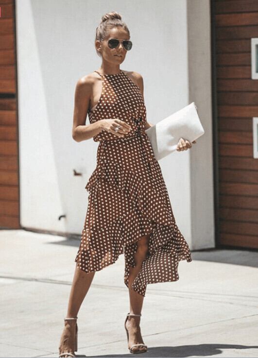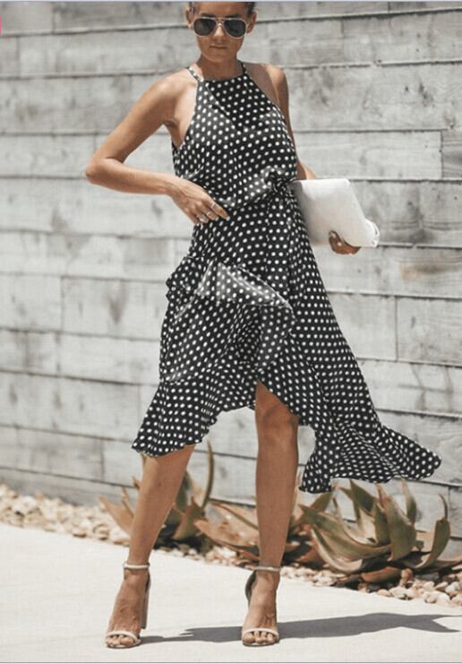 859#国境を越えたアマゾンヨーロッパとアメリカ爆発的な水玉3色ベルト不規則なドレス女性のトレンド ハーネス 6733089070257653