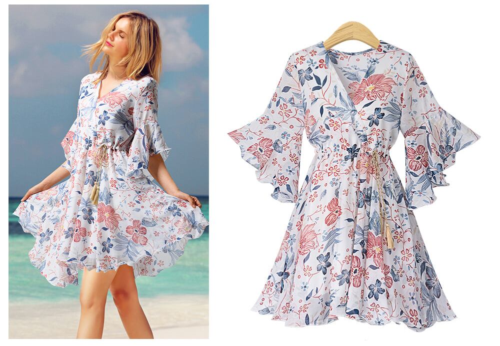 ヨーロッパとアメリカンスタイルの夏の女性の新しいAliExpressアマゾンebayフローラルVネックシフォンロングドレス サマー 夏物 花柄 ヨーロピアン 6733018920445687