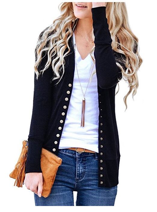 スポットスタイル欧米アマゾン秋冬ファッションショート無地Vネック長袖ボタンカーディガントップ ロング オータム 秋物 ウィンター 冬物 ソリッドカラー ヨーロピアン 6733092790669923