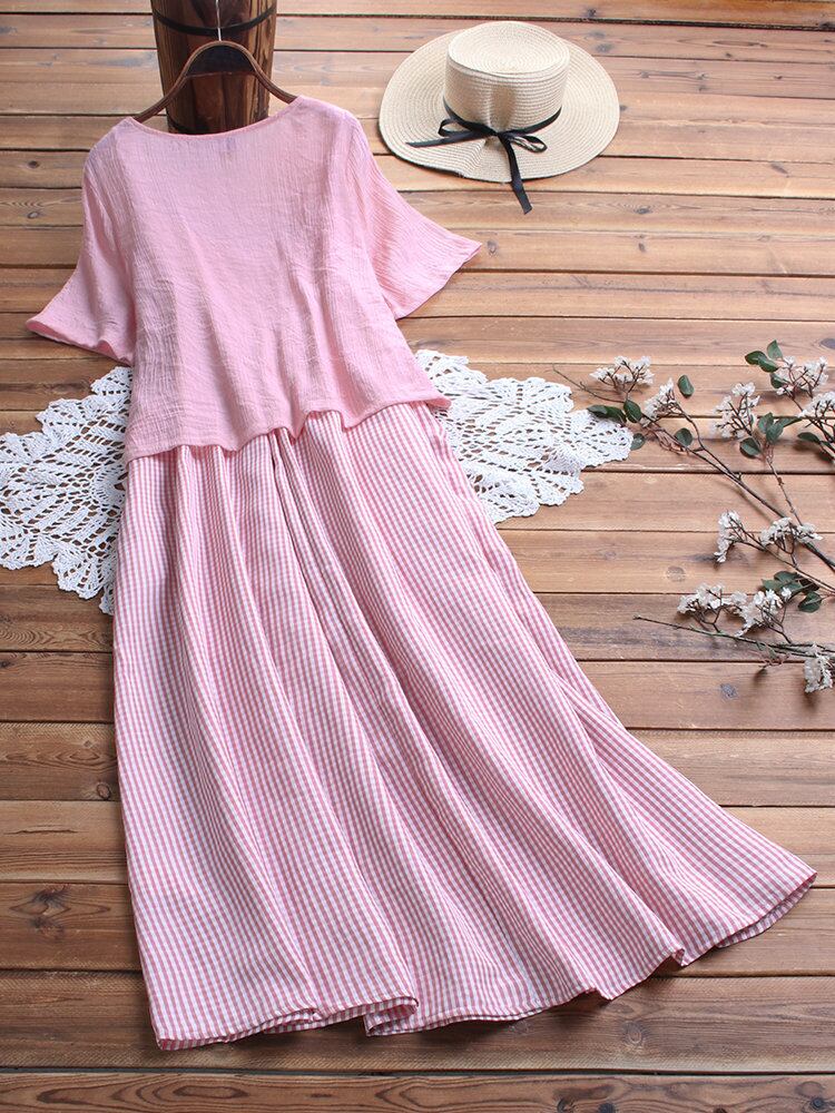 ヨーロッパとアメリカンスタイルのファットMMチェック柄ファッション販売ファッション新しい爆発スタイルラージサイズルーズツーピースドレスワード女性トレンド 大きめサイズ ヨーロピアン 6733066140578715