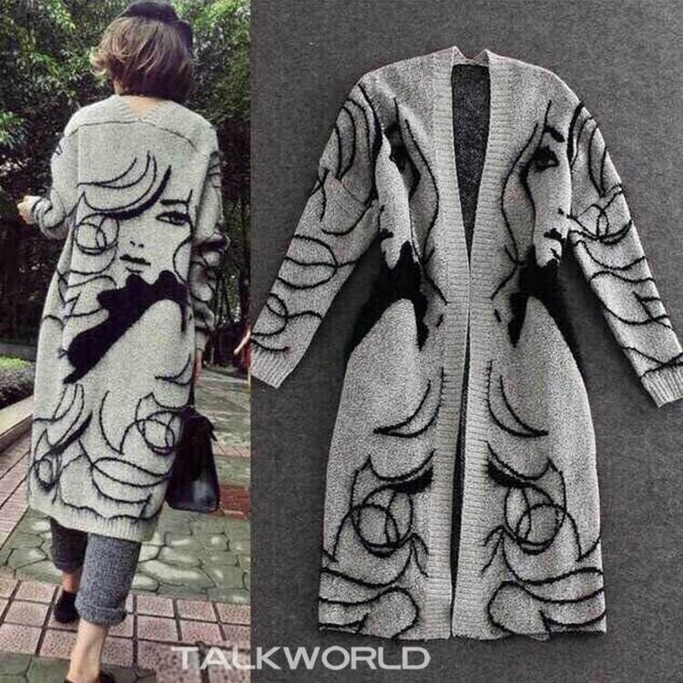 ヨーロッパとアメリカの春、秋、冬のファッションの新しいミドル丈の女性のニットカーディガンバットスリーブは、ルーズプリントのセーターコートを厚くしました スプリング 春物 オータム 秋物 ウィンター 冬物 ヨーロピアン 6733071613157530