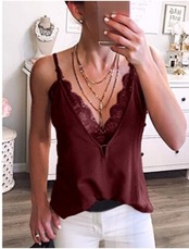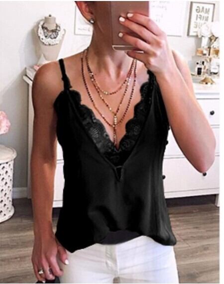 AliExpressのebayはヨーロッパとアメリカのスタイルのセクシーなファッションVネック胸メッシュオープンバックキャミソールを望みます ヨーロピアン 6733076230555462