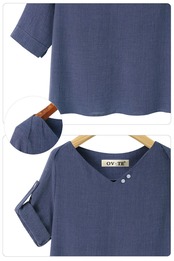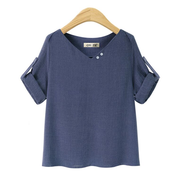 ラージサイズミッドスリーブシャツ夏ヨーロッパとアメリカの新しいVネック半袖Tシャツルーズで薄いラージサイズミッドスリーブトップシャツ 大きめサイズ サマー 夏物 ヨーロピアン 6733025605366376