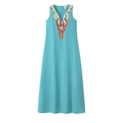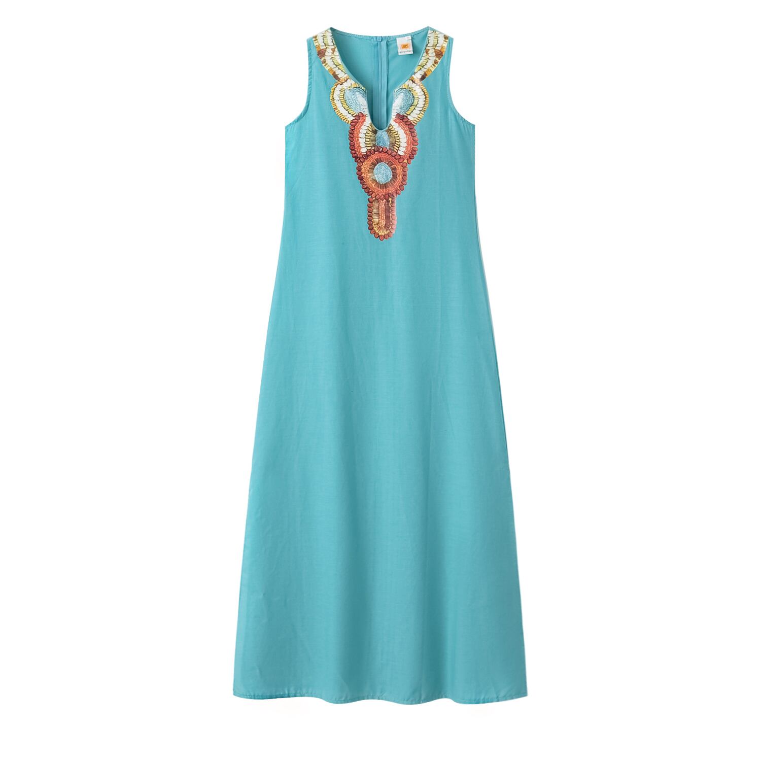 ディープVサマーウィメンズナショナルスタイルルースコットンリネンボヘミアンノースリーブディープVネックサイドスリットレディーススカート 夏物 6733042914562605