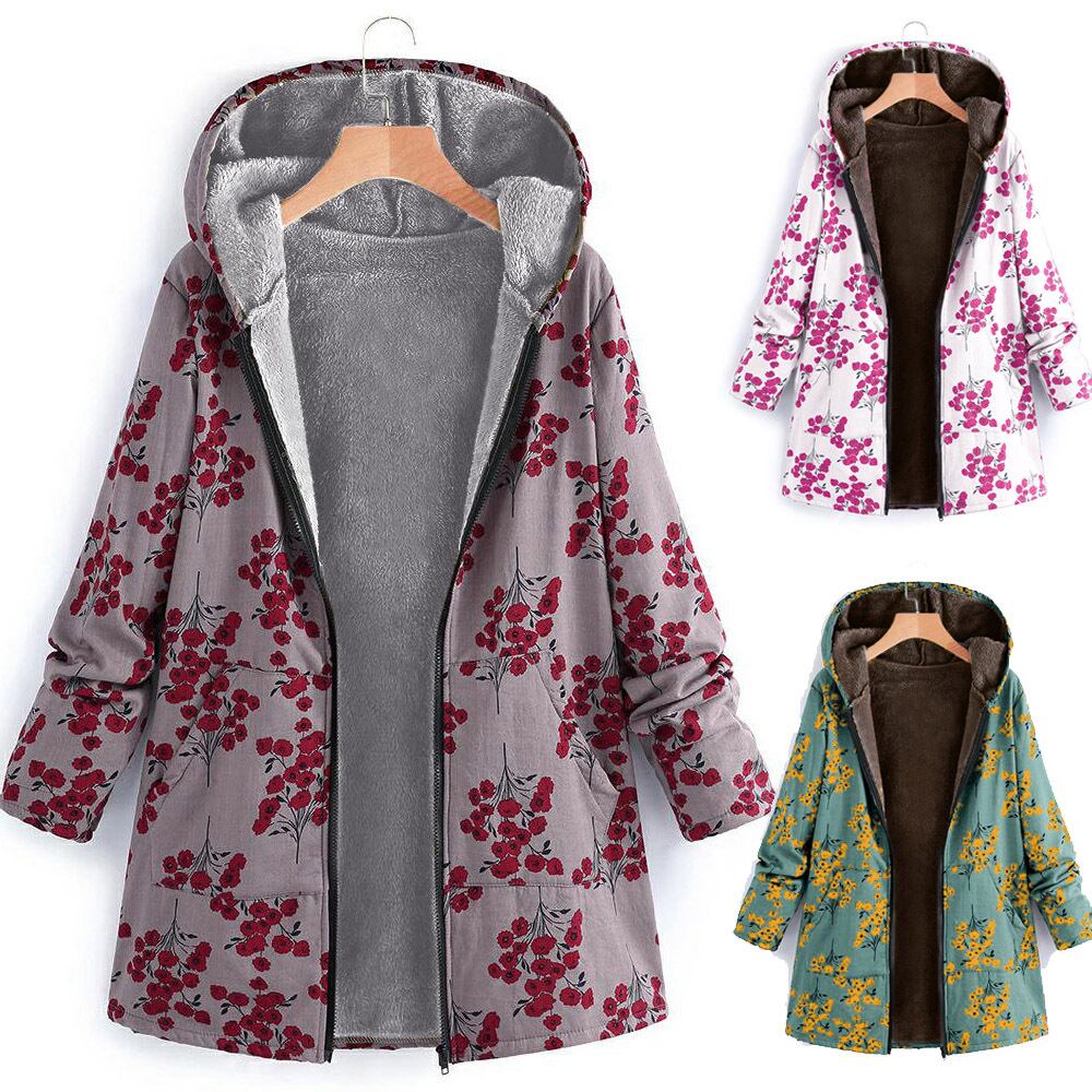 秋冬の新作レディース長袖ジッパーフード付き厚手のコンポジットコットンコートアマゾンプリントミドル丈コートタイド ロング オータム 秋物 ウィンター 冬物 6733055014159065